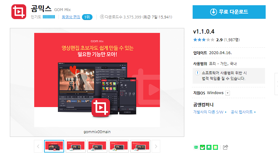 "곰믹스 다운로드"로 검색하면, 아래와 같이 무료로 다운로드가 가능합니다.